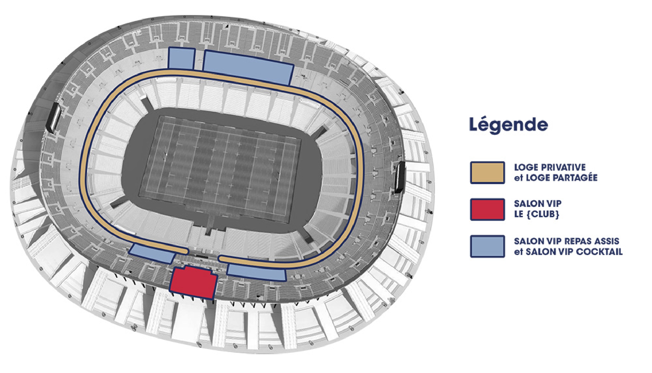 Retrouvez sur le plan les emplacements en tribune des offres hospitalités.